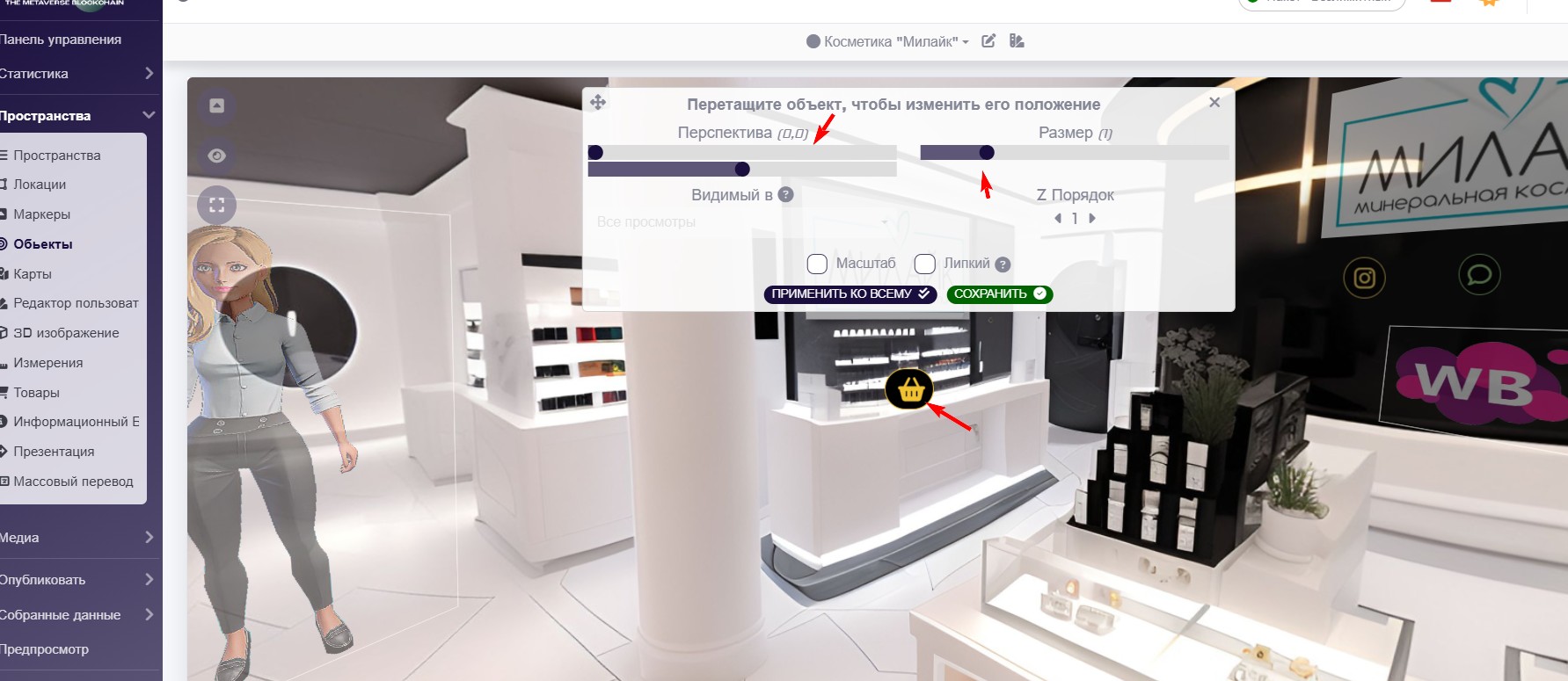 Теперь вам нужно создать точку интереса (ИКОНКУ) и связать ее с нужным товаром.