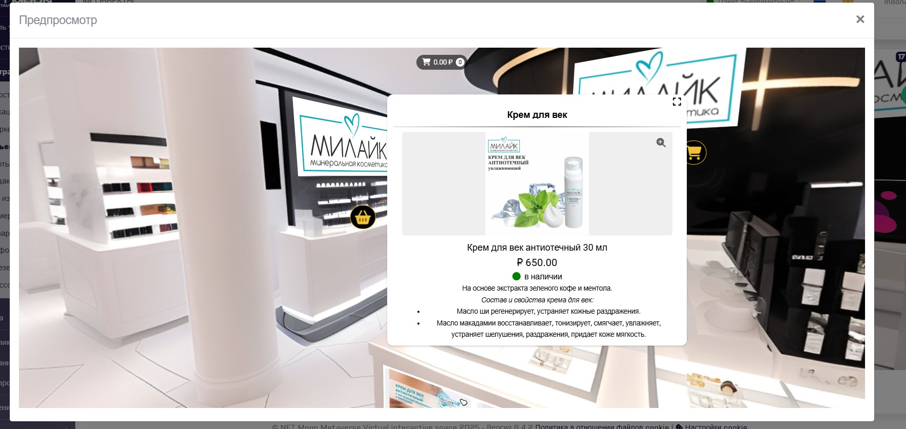 Выберите Пространства -> Список пространств в боковом меню и нажмите кнопку Изменить на нужном туре. Далее перейдите на вкладку Магазин .